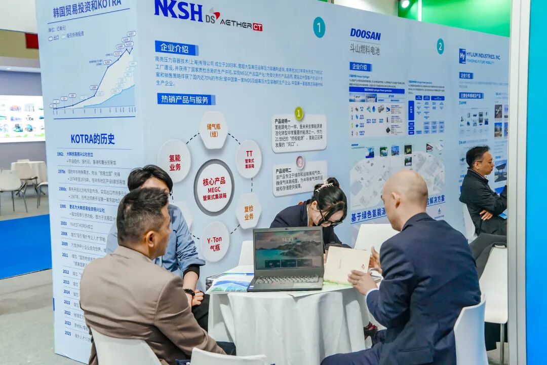 展会期间,各类国际交流活动轮番开展,推动中外合作从“隔屏对话”升级为同台对接、精准携手。匈牙利能源部官员在2026世界氢能合作交流大会视频致辞,分享该国氢能产业发展经验与合作愿景;韩国驻武汉总领事馆、大韩贸易投资振兴公社武汉代表处深度参与,组织9家韩国头部氢能企业组团参展,韩国忠清南道、江原特别自治道官员现场推介,带来高效氨制氢系统、全系列燃料电池等国际前沿技术装备,促成多项技术对接与合作共识。